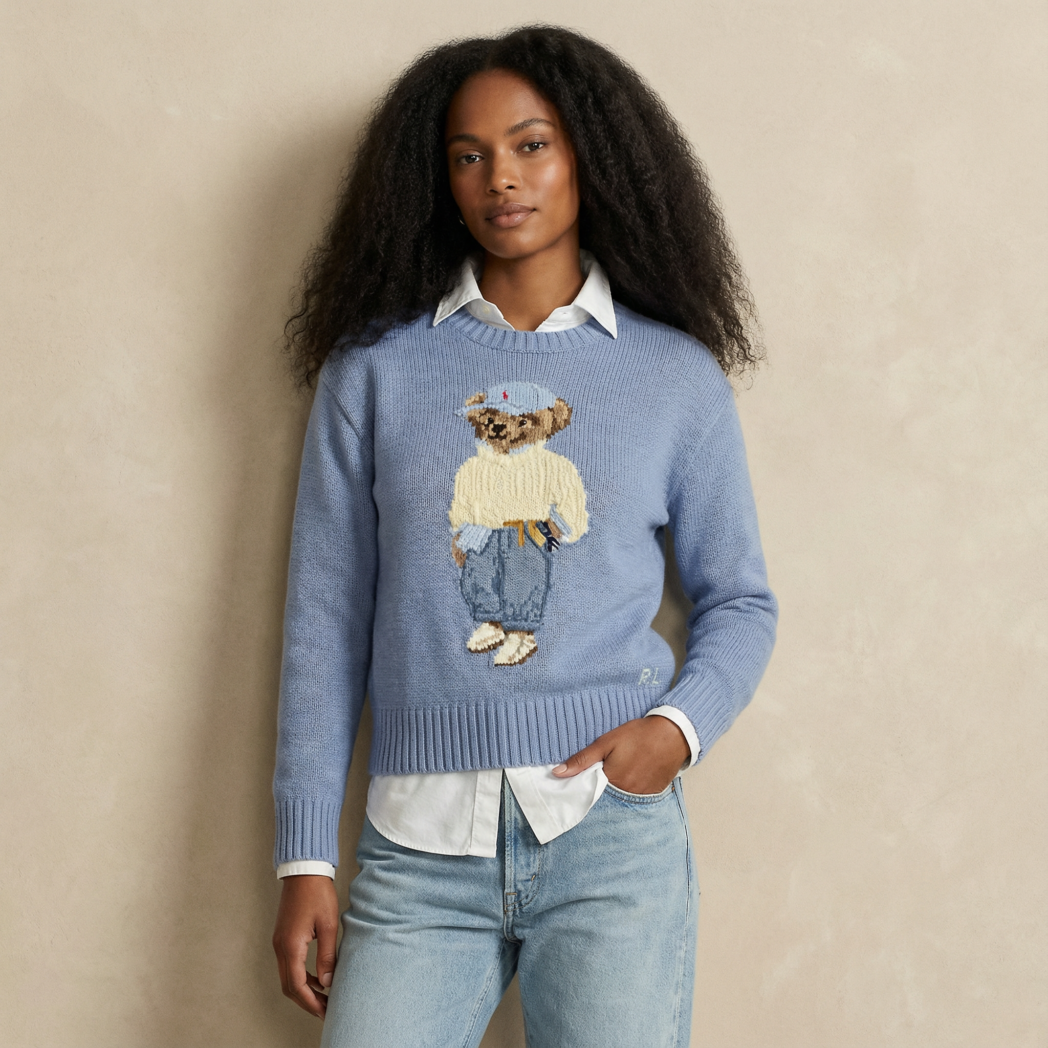 - Bear-Intarsienstrick und Stickerei auf der Vorderseite